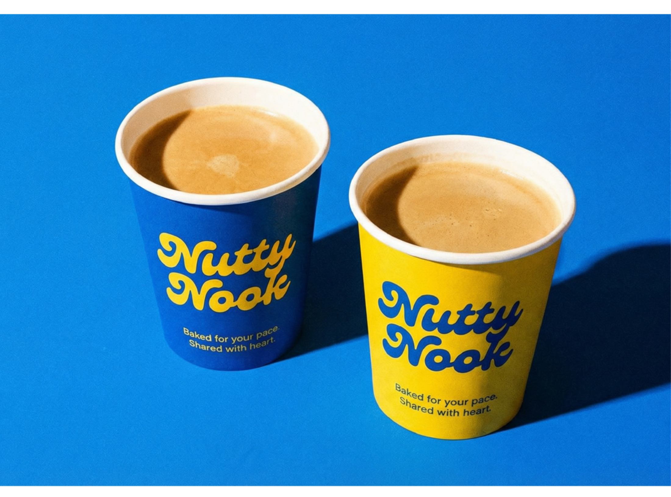 Our signature blend of calming blue and sunny yellow reflects our dual promise: a moment of quiet comfort and a burst of happy flavor. At Nutty Nook, every bite is about unwinding and enjoying the simple, tasty pleasures of life.